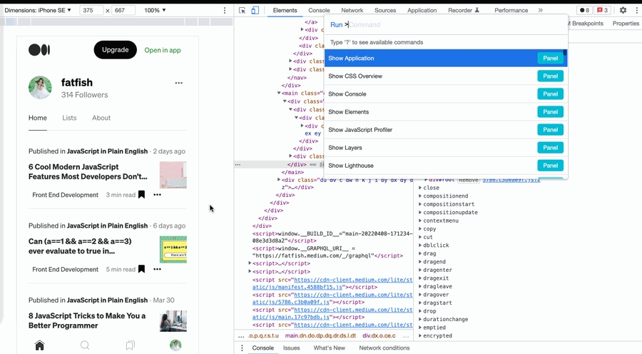 Использование document.querySelector и document.querySelectorAllдля выбора элементов текущей страницы в консоли является наиболее распространенным способом, но это слишком длинно, и мы можем использовать $ и $$ вместо этого (даже если на страницу не подключен JQuery):