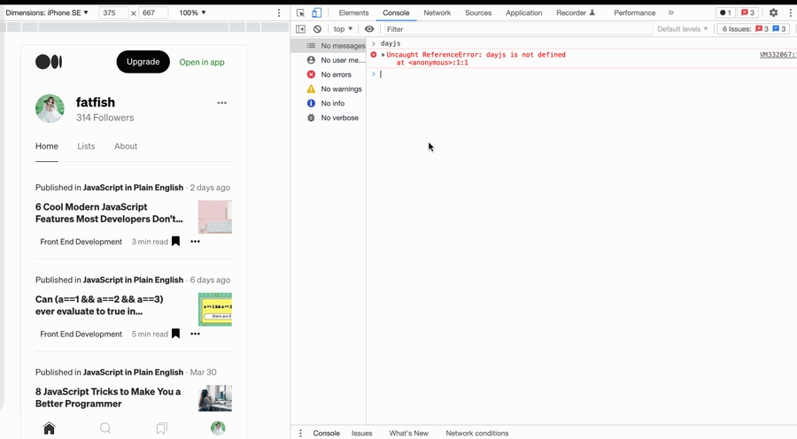 Иногда я хочу использовать NPM-пакеты такие, как dayjsили lodash, но я не хочу заходить на официальный сайт, чтобы проверить это. Было бы неплохо, если бы мы могли попробовать это прямо на консоли, и мы можем!